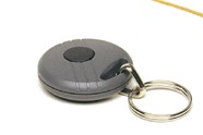 Kauko-ohjain on pyöreä ja siinä on yksi nappi.
