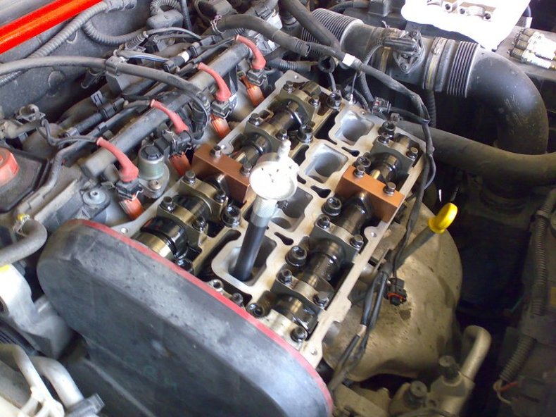 "...näin tai ei sitten lainkaan", heh. Tuosta kun vielä jättää nokka-akselien lukituspalat ja mittakellon pois, kun ei niitäkään tarvi. Eikä tarvi venttiilikoppaa aukaista eikä ole riskiä nokka-akselien ajoituksen sotkemisesta, kun ei tarvi nokkapyöriä löysätä. Ihan niinku kaikissa muissakin normaaleissa bensakoneissa...