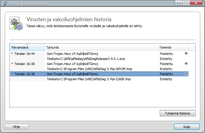 Nyt f-secure online scanner ilmoittaa että tuo alfadiag.exe on virus.