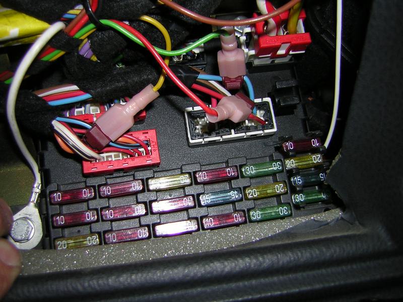 Tässä muutama kuva, jos niistä nyt mitään apua on. Kuvista näkee mistä sähköä on ryöstetty, valitettavasti piuhojen värit ja tarkoitukset sisältänyt paperi on "hukka"-nimisessä paikassa. Valkoinen lienee koukun maa. Muistaakseni kuvassa näkyvä ruskea johto meni johonkin ohjausakselille... Aika on tappanut muistikuvat. Kuvat -98 sedanista, mutta -02 vanhalla kojelaudalla lienee vielä samaa kauraa.