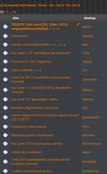 Alla vielä kuvakaappaus kia-hyundai foorumin ceed-osiosta, tuttuja otsikoita