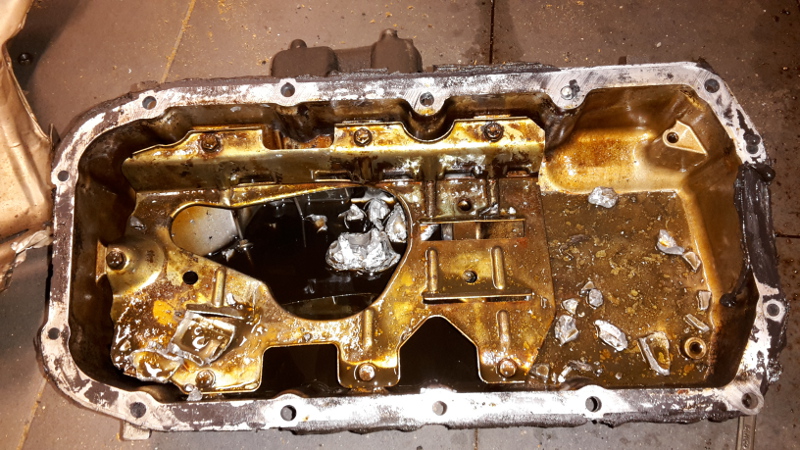 tiivisteliima mitä öljypohjan tilkkimiseen on käytetty on tukkinut öljypumpun imusihdin ==> öljynkierto hävinnyt ja sitä kautta on "dominoefekti" saanut alkunsa