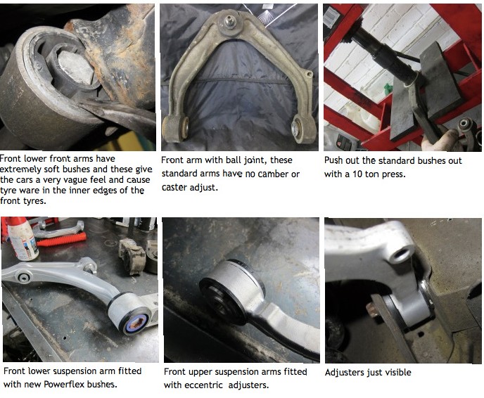 Minulla on huonot kokemukset säädettävistä powerflex puslista, jotka pitivät ääntä, oli 159:ssä etu ylätukivarsissa. Säätämättömät powerflex puslat olivat Saab:ssa todella hyvät,kaikki puslat olivat Powerflex:n valmistamat, ajettavuus parani todella paljon, eli tuli tarkaksi, auto meni sinne minne ohjasin, eikä suurinpiirtein. Alfa Romeon etupään alatukivarren puslat, etenkin taaimmainen, pitäisi olla polyuretaania.
