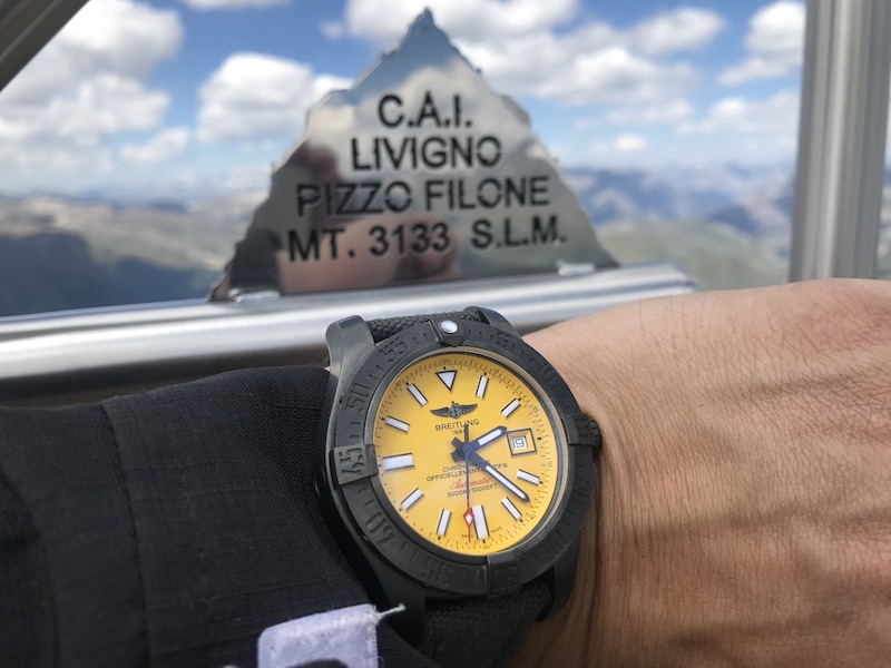 Kuvassa vuonna 2018 hankittu Hamilton prätkäreissulla Italian Livignosta, kellon ensi kaste vuorelle kiipeäminen.