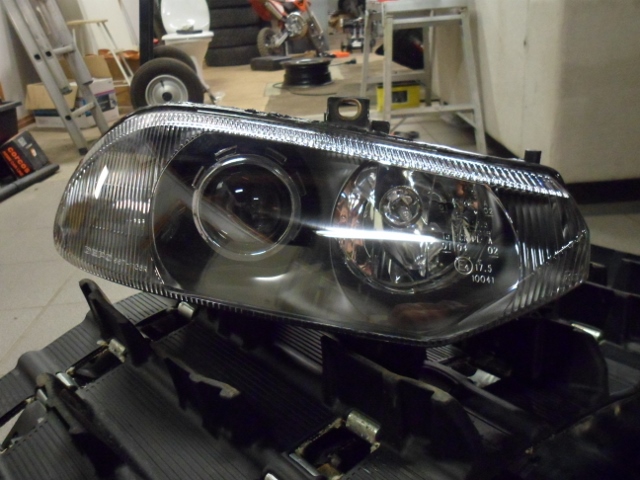 Alfan umpiot irti (Depon romut) keulalta pois (eilen) ja tänään purettu osiin, vanhat orkkis Carellon umpiot myös osiksi. Carellon umpioihin lyhkäsille valoille rakennettu projektori (bi-xenon, tosin tällä hetkellä H1 normipolttimoilla) ja kehyksien mustiksi maalaus, lopuksi Depojen lasien sovitus/liimaus Carellon umpioihin. Huomenna näkee miten homma lopulta onnistui.