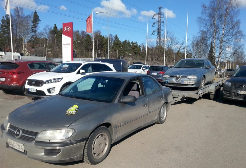 Ekaa kertaa alfa tarvitsi hinurin kyytiä. Oikeassa etupyörässä näytti jarrusatula osuvan vanteeseen ja aiheuttavan melkoisen metelin.