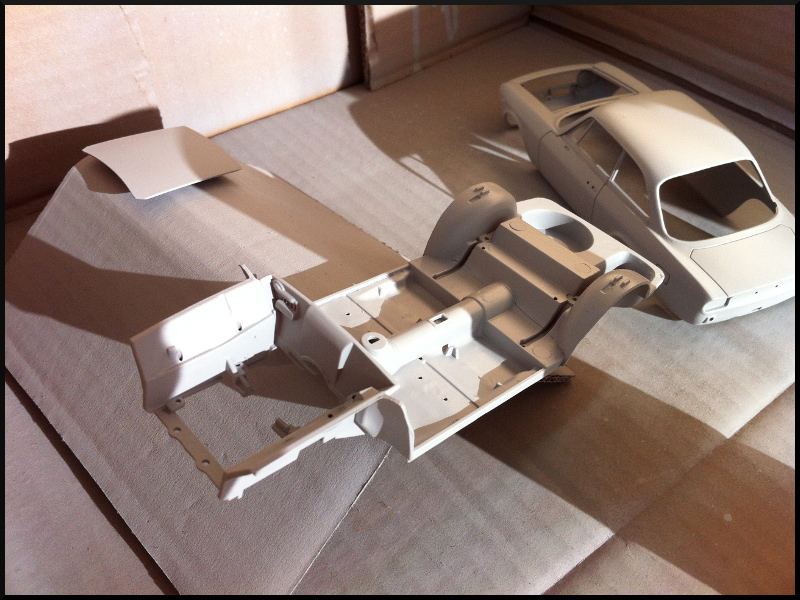 Osittain pohjamaalissa ja vähän tökitty nippuun. Kabiini valmis