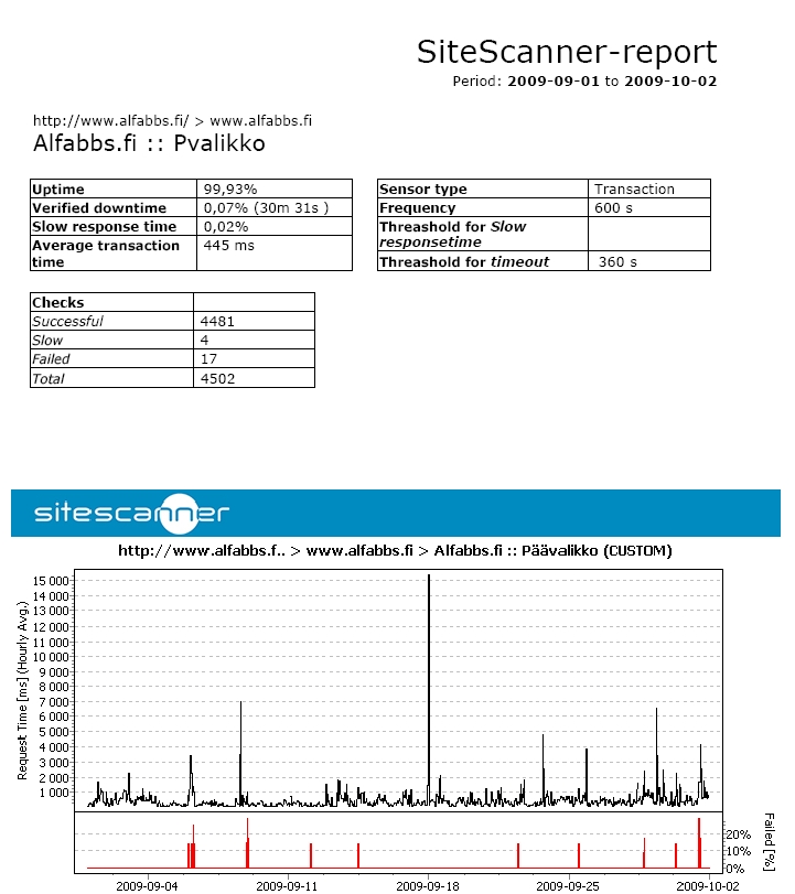 Tässä hieman tilastoa by SiteScanner, eli aika satunnaisesti ollut hämminkiä.
